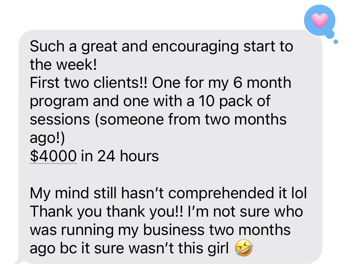 • It's not JUST about making sales & getting clients. In the Inner Circle, we also cover how to set your own schedule, impact clients you ADORE, & get your message out there in a way that feels good for you, instead of having to constantly keep up with the latest social media trends.